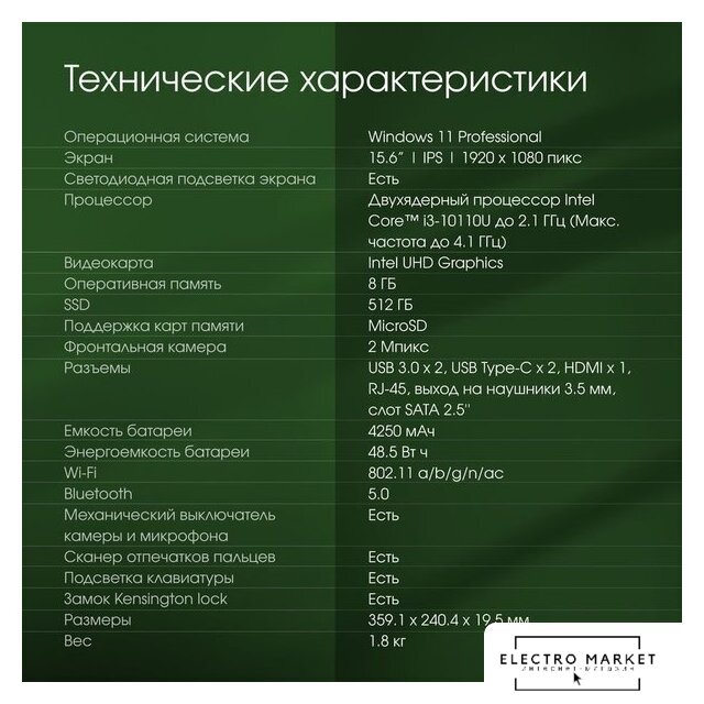 15.6" 1920 x 1080, IPS, 60 Гц, Intel Core i5 1334U, 16 ГБ DDR4, SSD 512 ГБ, видеокарта встроенная, Windows 11 Pro, цвет крышки серебристый, аккумулятор 51 Вт·ч