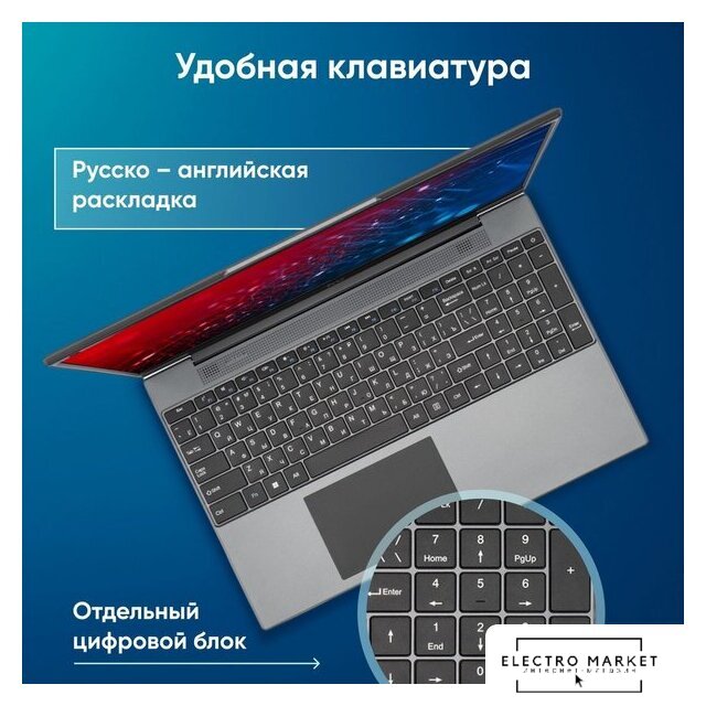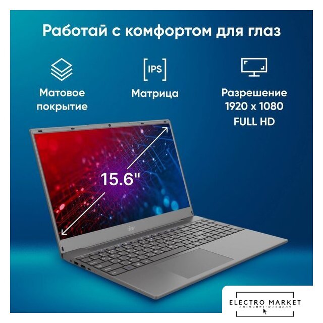 15.6" 1920 x 1080, IPS, 60 Гц, Intel Processor N100, 8 ГБ, SSD 256 ГБ, видеокарта встроенная, без ОС, цвет крышки серый, аккумулятор 45.6 Вт·ч