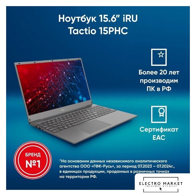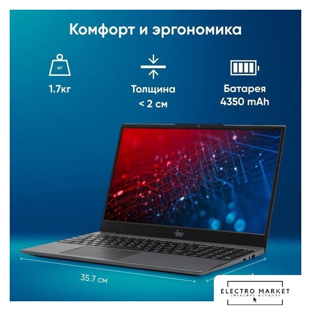 15.6" 1920 x 1080, TN+Film, 60 Гц, Intel Core i3 1215U, 8 ГБ DDR4, SSD 256 ГБ, видеокарта встроенная, без ОС, цвет крышки черный, аккумулятор 38 Вт·ч