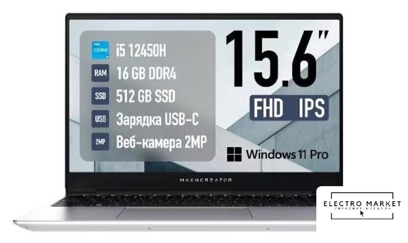 15.6" 1920 x 1080, IPS, 60 Гц, Intel Core i5 1155G7, 16 ГБ DDR4, SSD 512 ГБ, видеокарта встроенная, Windows 11 Home, цвет крышки серебристый, аккумулятор 45.6 Вт·ч