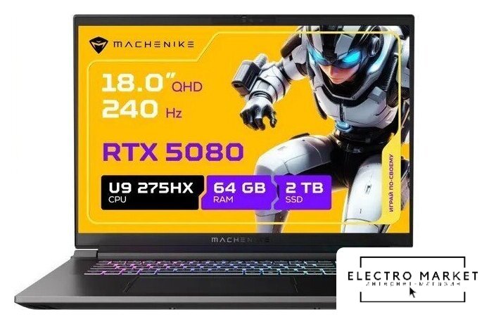 18" 3840 x 2400, IPS с miniLED подсветкой, 120 Гц, Intel Core Ultra 9 275HX, 64 ГБ DDR5, SSD 2048 ГБ, видеокарта NVIDIA GeForce RTX 5080 16 ГБ (TGP 150 Вт), Windows 11 Home, цвет крышки черный, аккумулятор 99.9 Вт·ч