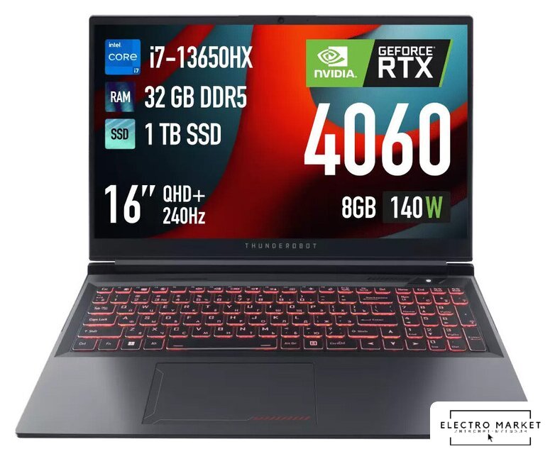 16.0" 1920 x 1200, IPS, 165 Гц, Intel Core i7 13650HX, 16 ГБ DDR5, SSD 512 ГБ, видеокарта NVIDIA GeForce RTX 4050 6 ГБ (TGP 140 Вт), без ОС, цвет крышки темно-серый, аккумулятор 90 Вт·ч