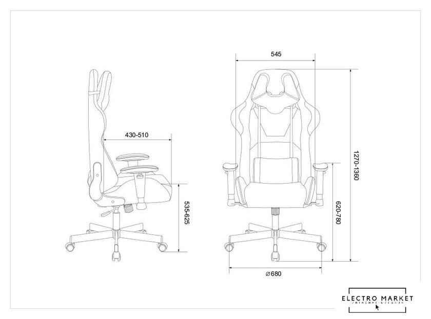игровое (геймерское) кресло, максимальная нагрузка 150 кг, ширина кресла 66 см