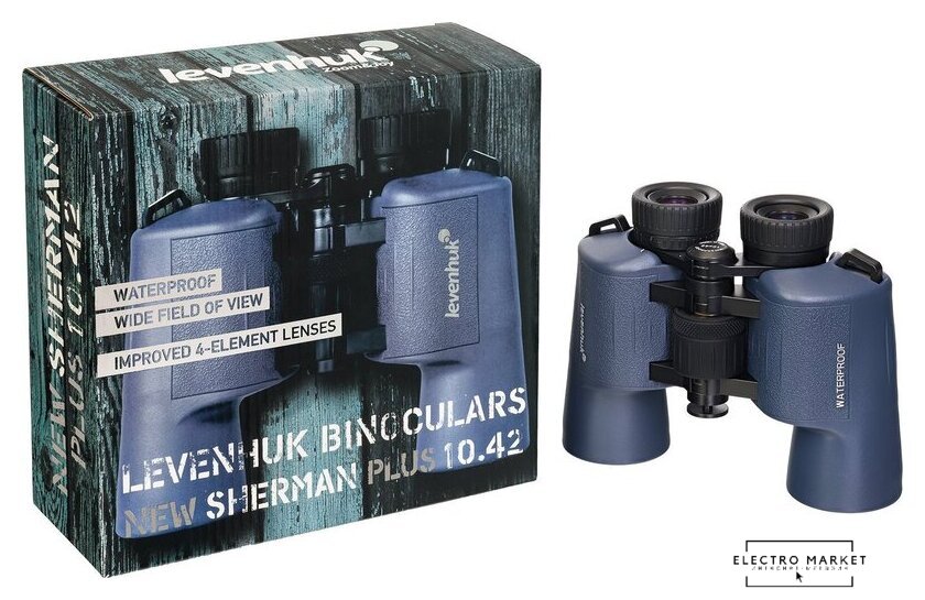 бинокль, полевой, герметичный, 10-кратный, линза 50 мм, угол зрения 6.5°