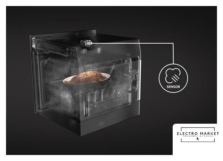 электрический с конвекцией, приготовление на пару, объем 71 л, 23 режима, автопрограммы, очистка каталитическая, 3 стекла в дверце, направляющие проволочные + телескопические (3 уровня), термощуп