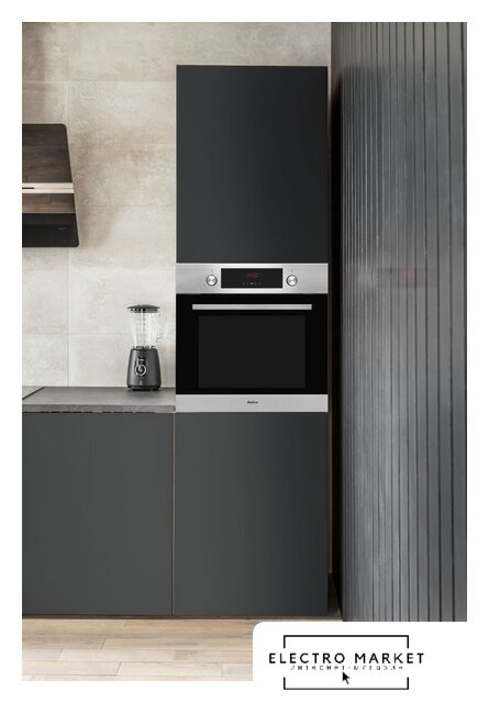 электрический с конвекцией, объем 69 л, 7 режимов, очистка каталитическая + паровая, 3 стекла в дверце, направляющие проволочные + телескопические (1 уровень)