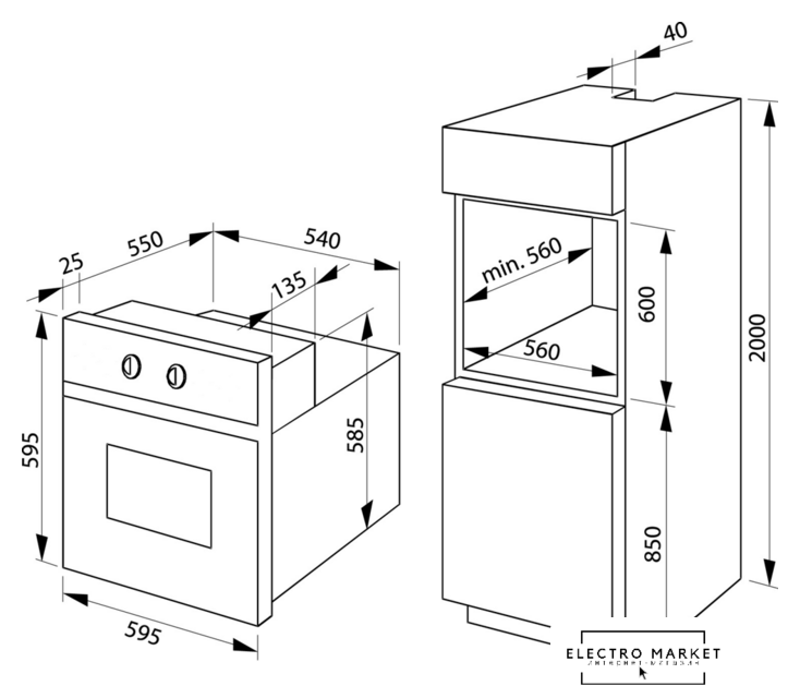 электрический с конвекцией, объем 66 л, 8 режимов, очистка ручная, проволочные направляющие, энергопотребление A