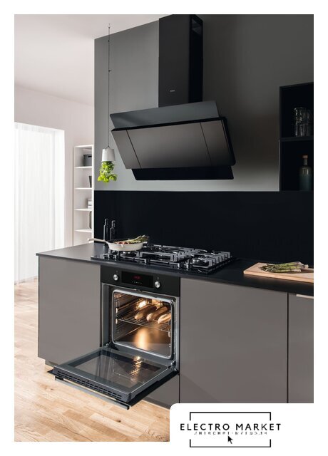электрический с конвекцией, объем 80 л, утапливаемые переключатели, 9 режимов, очистка паровая, 2 стекла в дверце, направляющие проволочные + телескопические (1 уровень)