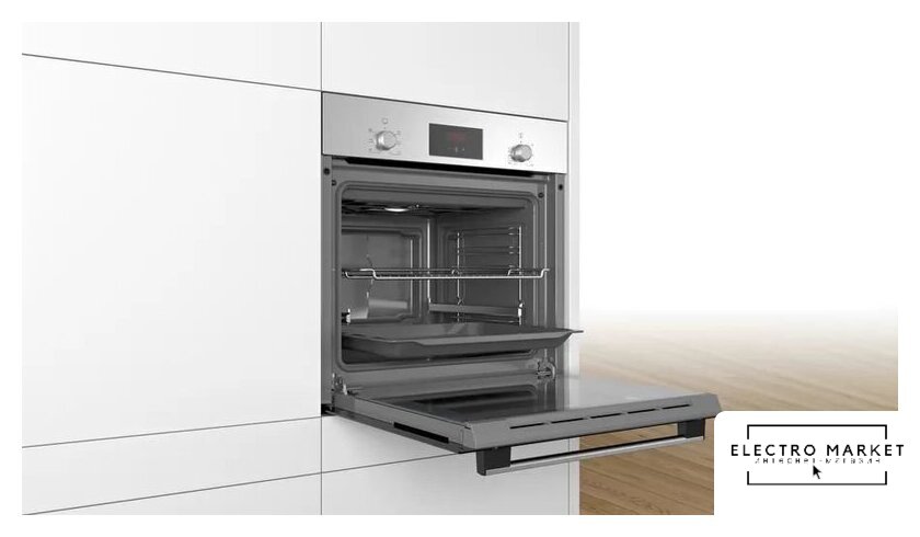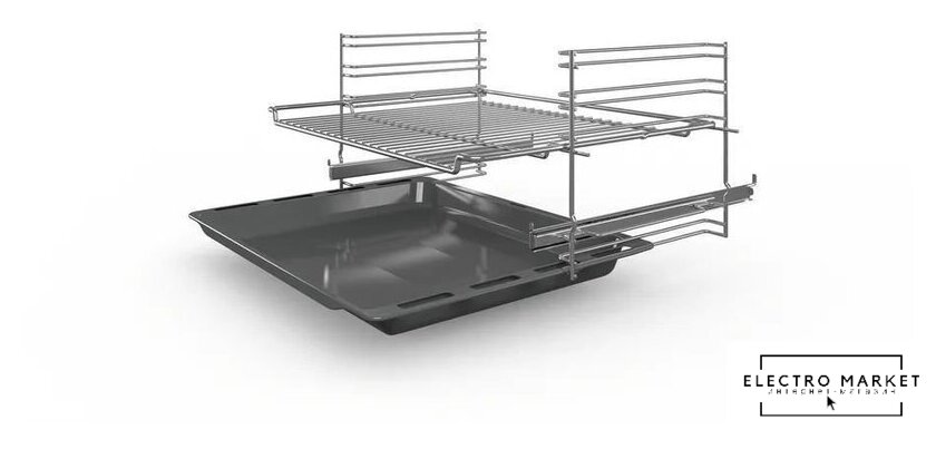 электрический с конвекцией, объем 73 л, утапливаемые переключатели, 7 режимов, очистка каталитическая + паровая, 2 стекла в дверце, направляющие проволочные + телескопические (1 уровень)