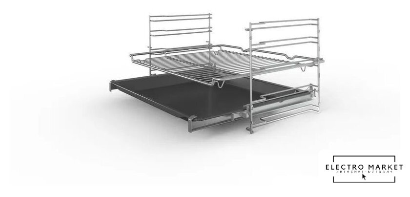 электрический с конвекцией, объем 60 л, 7 режимов, очистка каталитическая/паровая, проволочные направляющие, телескопические направляющие, энергопотребление A