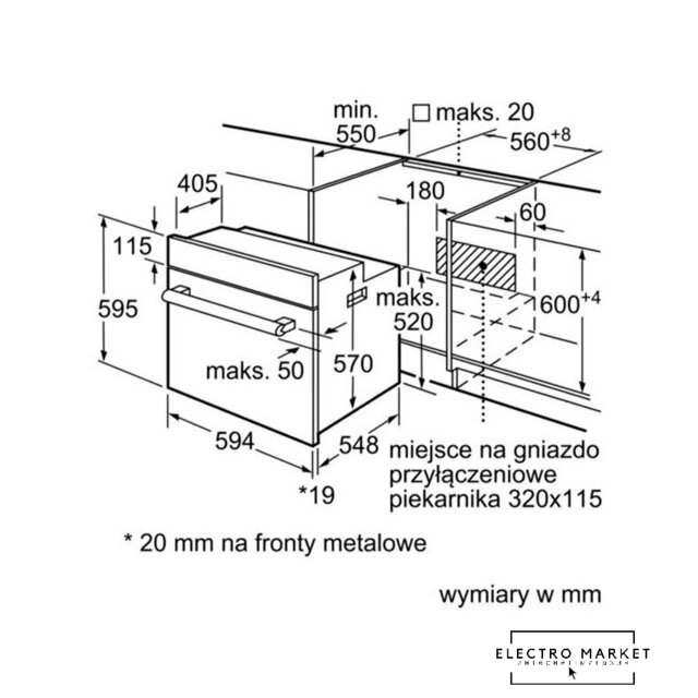 электрический с конвекцией, объем 60 л, 7 режимов, очистка каталитическая, проволочные направляющие, энергопотребление A