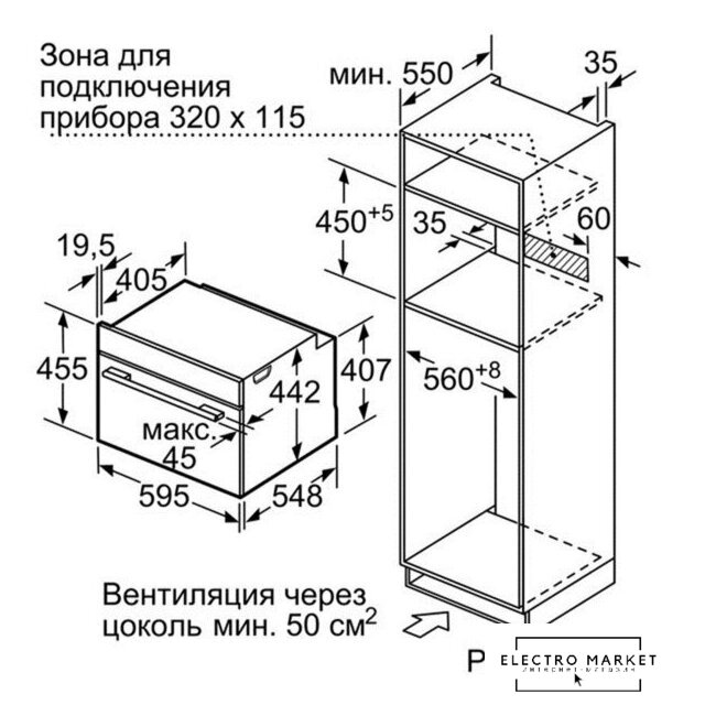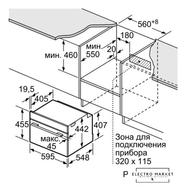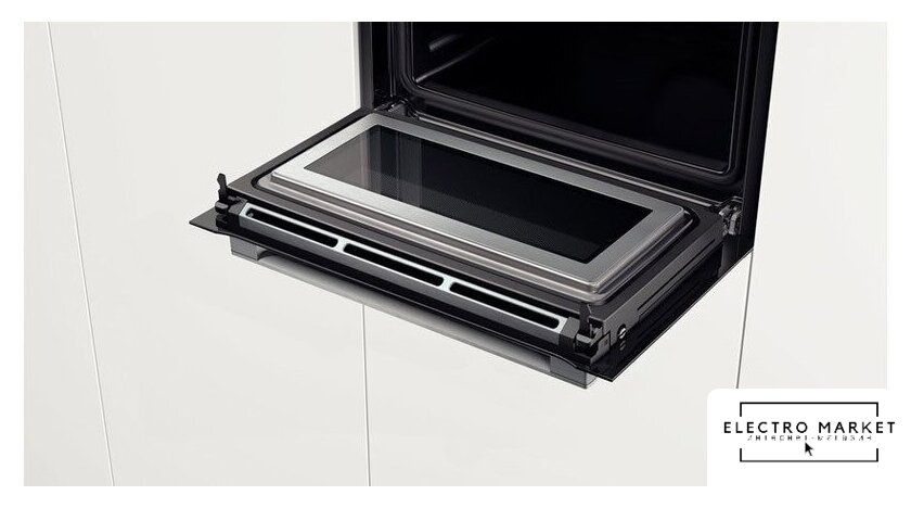 электрический с конвекцией, микроволны, приготовление на пару, объем 45 л, 21 режим, автопрограммы, очистка пиролитическая, направляющие проволочные + телескопические (1 уровень)