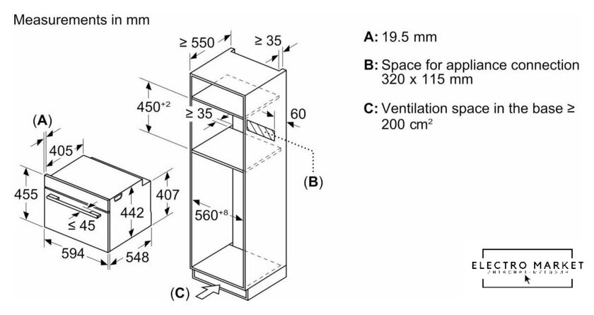 электрический с конвекцией, объем 65 л, 6 режимов, очистка паровая