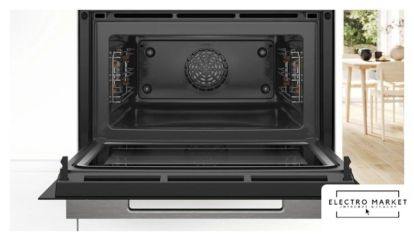электрический с конвекцией, приготовление на пару, объем 76 л, 12 режимов, автопрограммы, очистка каталитическая + паровая, 2 стекла в дверце, направляющие проволочные + телескопические (2 уровня)