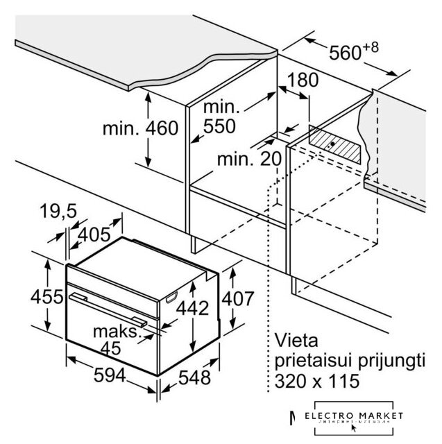 электрический с конвекцией, объем 76 л, 10 режимов, автопрограммы, очистка каталитическая, направляющие проволочные + телескопические (1 уровень)