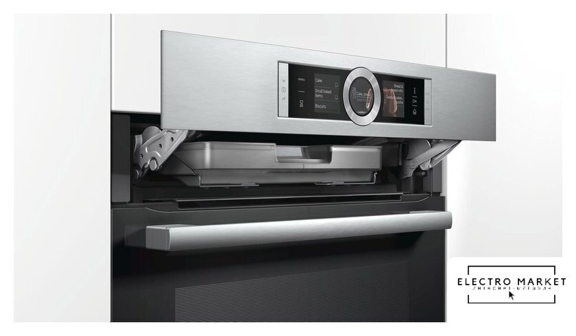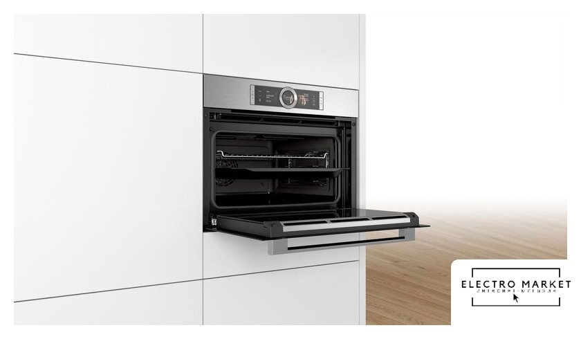 электрический с конвекцией, объем 71 л, 14 режимов, автопрограммы, очистка пиролитическая + паровая, 4 стекла в дверце, направляющие проволочные, термощуп