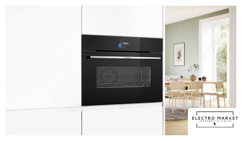 электрический с конвекцией, приготовление на пару, объем 76 л, 10 режимов, очистка пиролитическая, проволочные направляющие, телескопические направляющие, энергопотребление A+