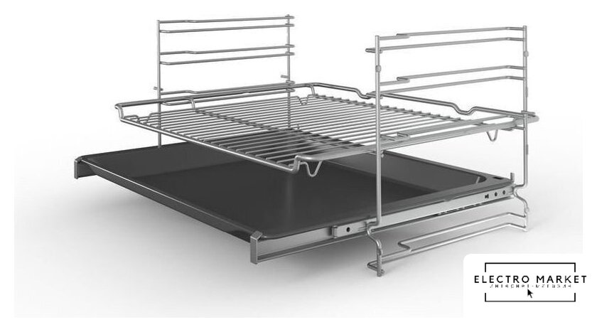 электрический с конвекцией, приготовление на пару, объем 72 л, утапливаемые переключатели, 9 режимов, очистка пиролитическая, 3 стекла в дверце, направляющие проволочные + телескопические (1 уровень), термощуп