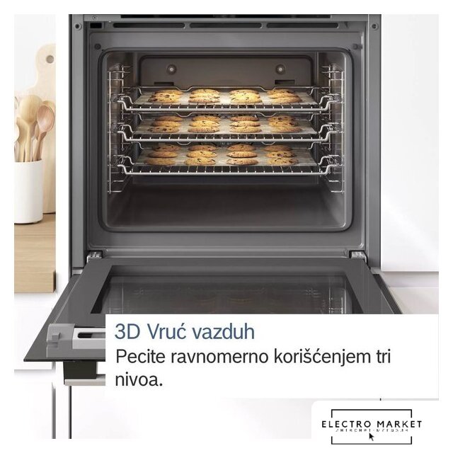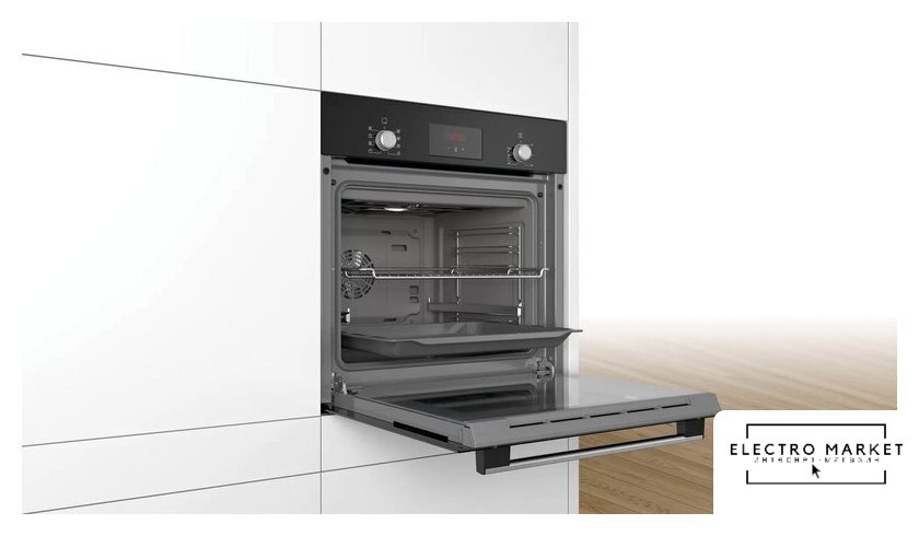 электрический с конвекцией, объем 69 л, 7 режимов, очистка каталитическая + паровая, 3 стекла в дверце, направляющие проволочные + телескопические (1 уровень)