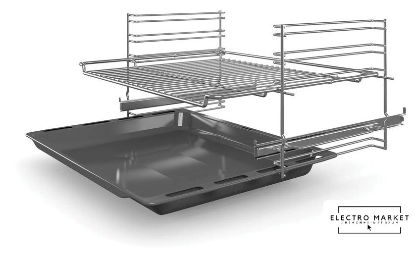 электрический с конвекцией, объем 70 л, утапливаемые переключатели, 9 режимов, очистка каталитическая, 3 стекла в дверце, направляющие проволочные + телескопические (2 уровня)