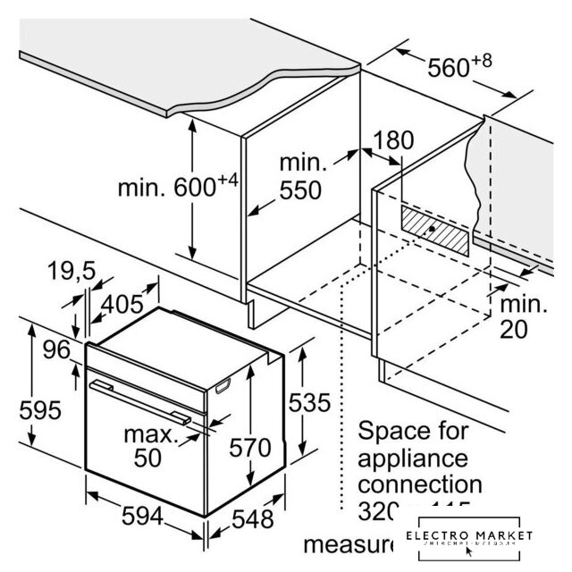 электрический с конвекцией, объем 72 л, автопрограммы, очистка пиролитическая, 3 стекла в дверце, направляющие проволочные + телескопические (1 уровень), термощуп
