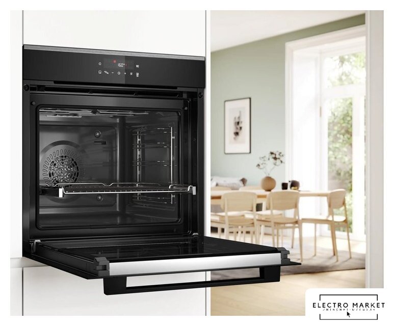 электрический с конвекцией, приготовление на пару, объем 72 л, утапливаемые переключатели, 9 режимов, очистка пиролитическая, 3 стекла в дверце, направляющие проволочные + телескопические (1 уровень), термощуп