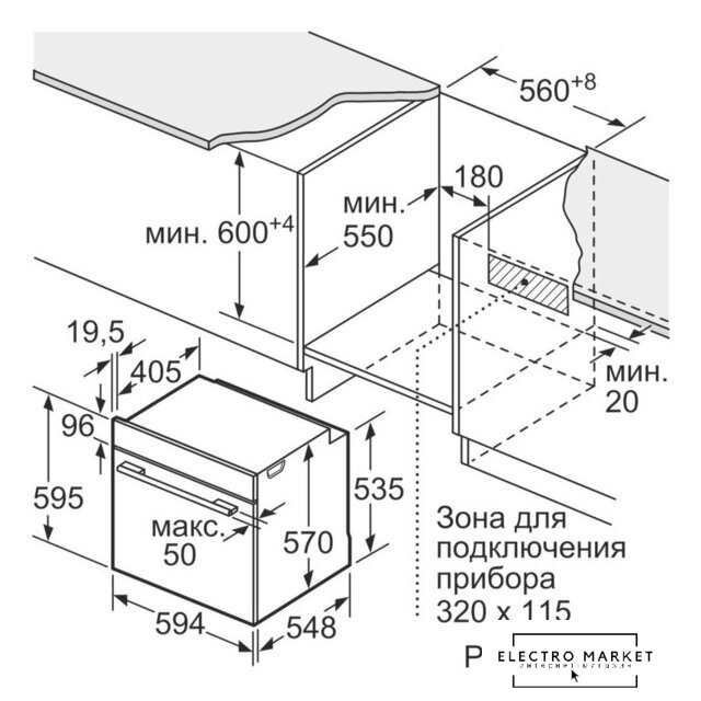 электрический с конвекцией, объем 74 л, 11 режимов, очистка ручная, направляющие проволочные