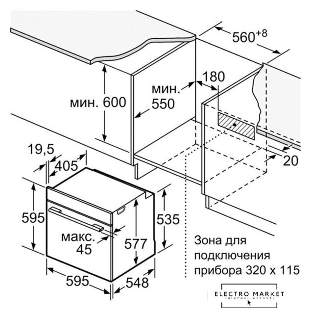 электрический с конвекцией, микроволны, объем 50 л, автопрограммы, очистка паровая, 3 стекла в дверце, направляющие проволочные