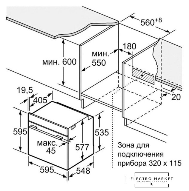электрический с конвекцией, объем 76 л, 10 режимов, автопрограммы, очистка каталитическая, направляющие проволочные