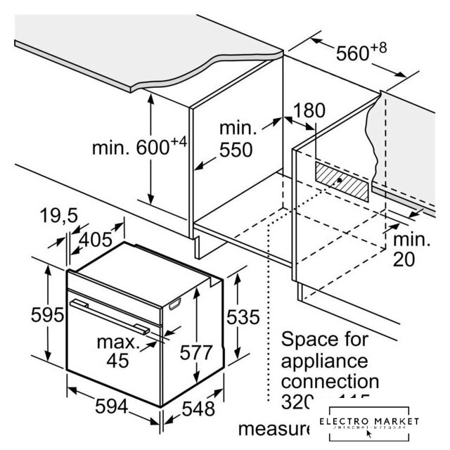 электрический с конвекцией, объем 101 л, 12 режимов, очистка каталитическая, проволочные направляющие, телескопические направляющие, энергопотребление A