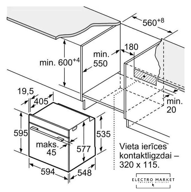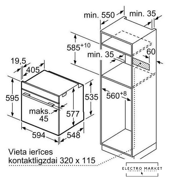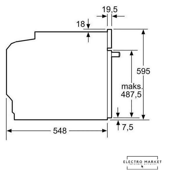 электрический с конвекцией, объем 71 л, утапливаемые переключатели, 11 режимов, очистка пиролитическая, 3 стекла в дверце, направляющие проволочные + телескопические (2 уровня)