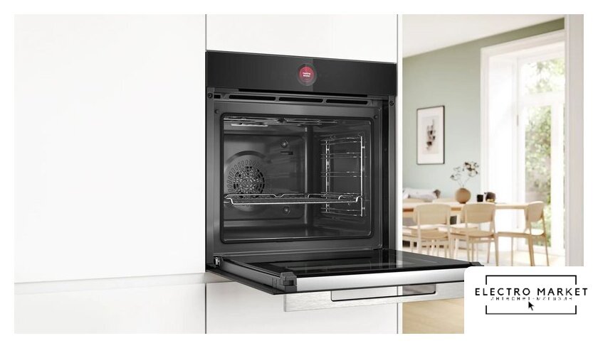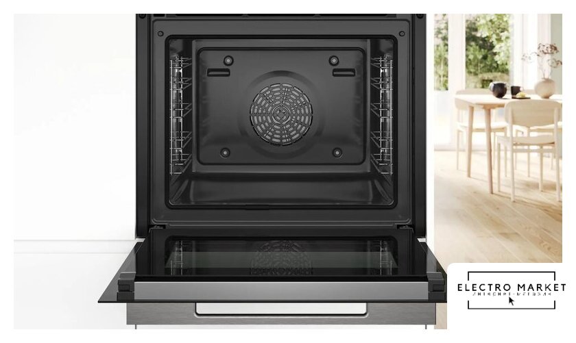 электрический с конвекцией, объем 78 л, 25 режимов, очистка пиролитическая + паровая, направляющие проволочные + телескопические (1 уровень), термощуп