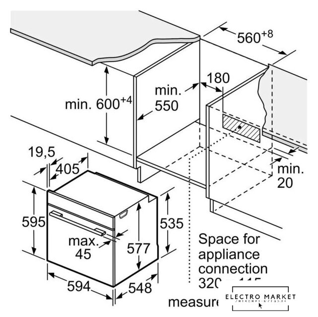 электрический с конвекцией, микроволны, объем 45 л, 15 режимов, очистка паровая, 3 стекла в дверце, направляющие проволочные