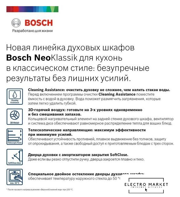 электрический с конвекцией, объем 73 л, 10 режимов, автопрограммы, очистка паровая, направляющие проволочные + телескопические (1 уровень)