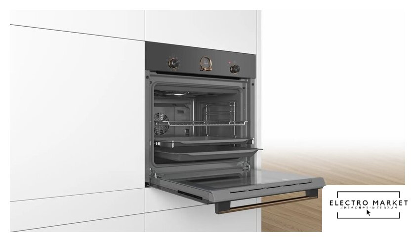 электрический с конвекцией, объем 71 л, утапливаемые переключатели, 8 режимов, очистка каталитическая, 2 стекла в дверце, направляющие проволочные + телескопические (1 уровень)