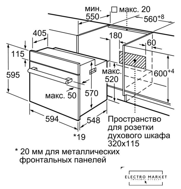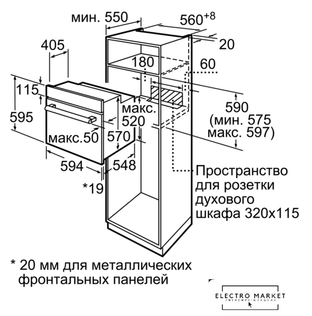 электрический с конвекцией, объем 67 л, 7 режимов, очистка ручная, проволочные направляющие, телескопические направляющие, энергопотребление A
