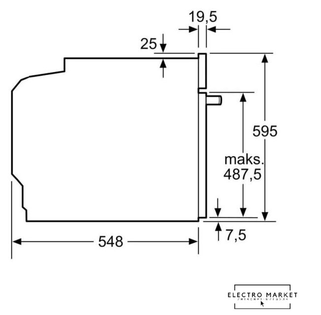 электрический с конвекцией, объем 72 л, 17 режимов, автопрограммы, очистка пиролитическая, 3 стекла в дверце, направляющие проволочные + телескопические (1 уровень), термощуп
