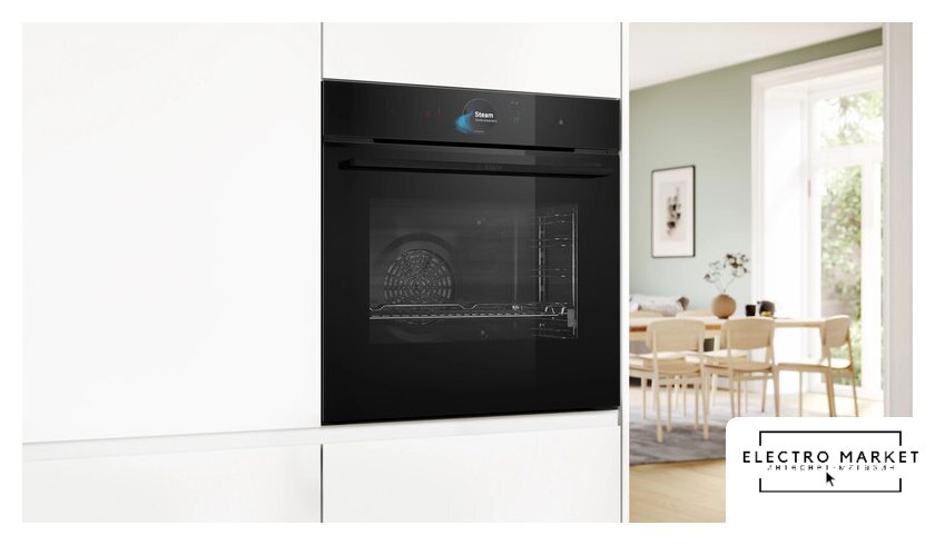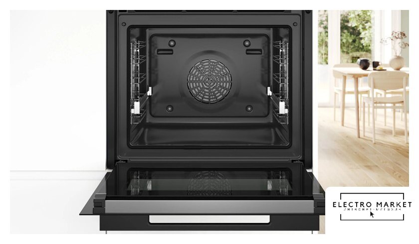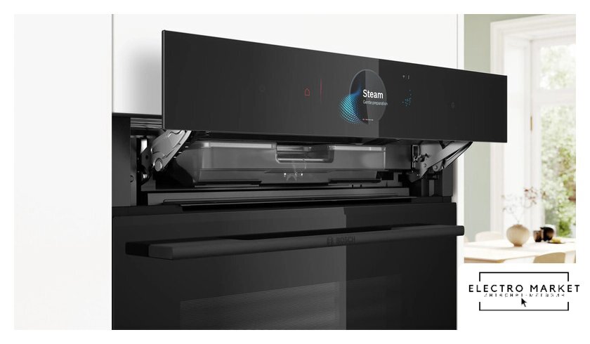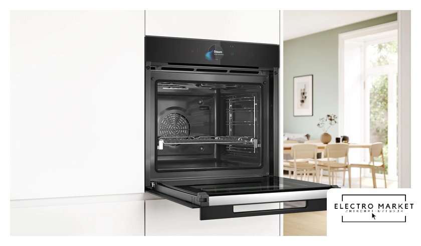 электрический с конвекцией, приготовление на пару, объем 68 л, 28 режимов, автопрограммы, очистка пиролитическая, 4 стекла в дверце, направляющие проволочные + телескопические (1 уровень), термощуп