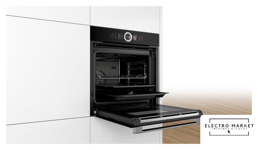 электрический с конвекцией, приготовление на пару, объем 76 л, 12 режимов, автопрограммы, очистка каталитическая + паровая, 2 стекла в дверце, направляющие проволочные + телескопические (2 уровня)