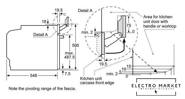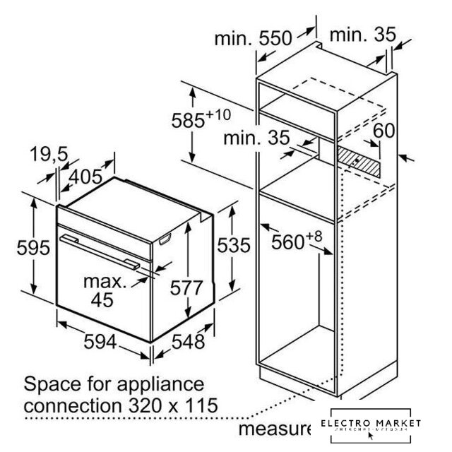 электрический с конвекцией, объем 71 л, 20 режимов, очистка пиролитическая, проволочные направляющие, телескопические направляющие, термощуп, энергопотребление A+