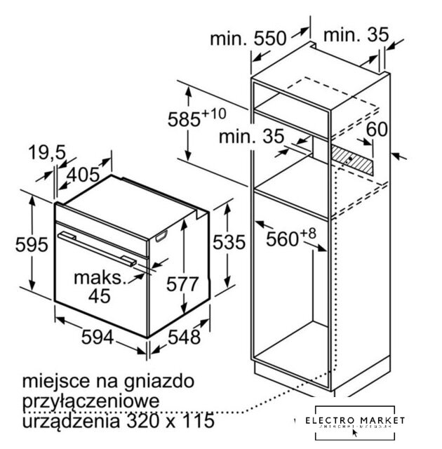 электрический с конвекцией, объем 68 л, 20 режимов, 150 автопрограмм, очистка пиролитическая, направляющие проволочные + телескопические (1 уровень), термощуп