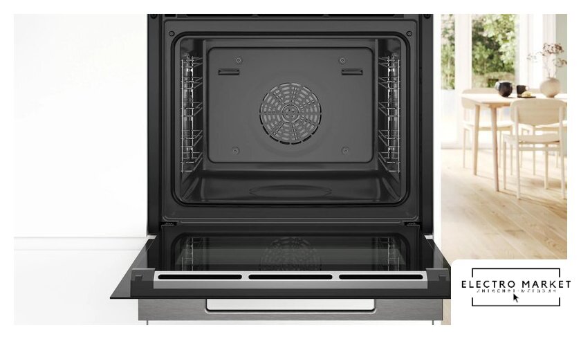 электрический с конвекцией, объем 68 л, 14 режимов, очистка пиролитическая, 4 стекла в дверце, направляющие проволочные