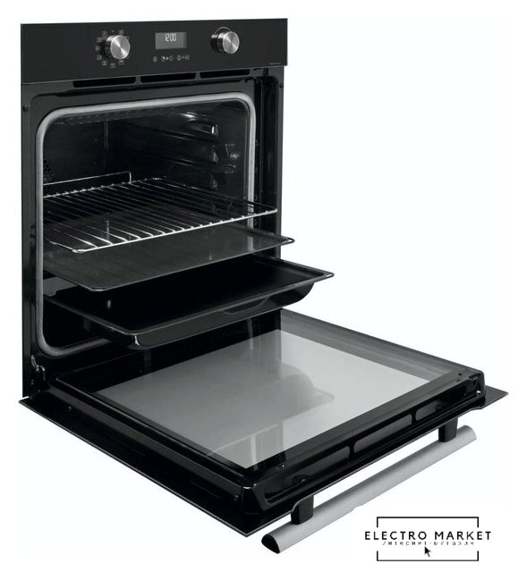 электрический с конвекцией, объем 70 л, 12 режимов, автопрограммы, очистка паровая, 3 стекла в дверце, направляющие проволочные + телескопические (1 уровень)