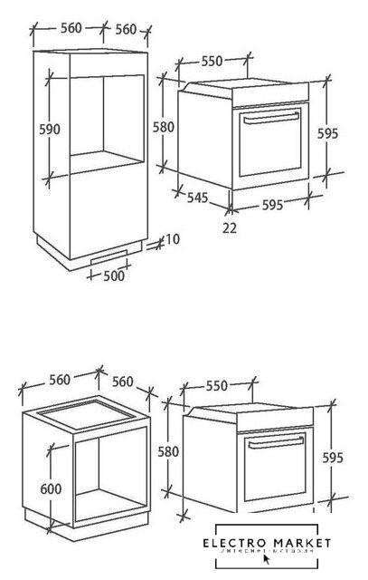 электрический с конвекцией, объем 50 л, 6 режимов, очистка ручная, проволочные направляющие, телескопические направляющие, энергопотребление A