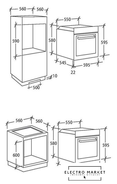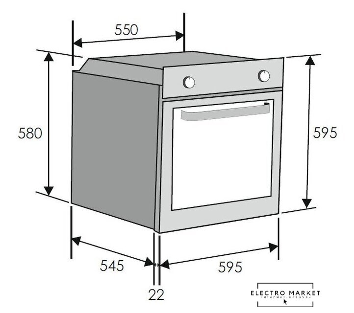 электрический с конвекцией, объем 60 л, утапливаемые переключатели, 8 режимов, очистка ручная, направляющие проволочные