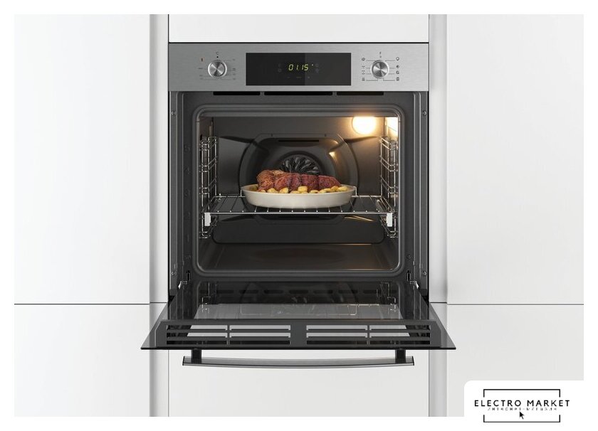электрический с конвекцией, объем 70 л, утапливаемые переключатели, 7 режимов, очистка паровая, 2 стекла в дверце, направляющие проволочные