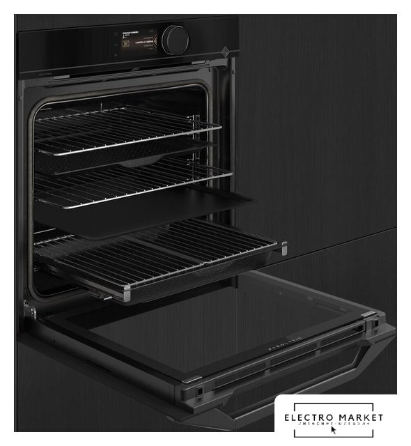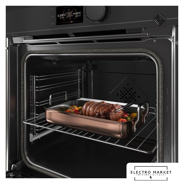 электрический с конвекцией, приготовление на пару, объем 71 л, 19 режимов, очистка пиролитическая + паровая, направляющие проволочные, термощуп