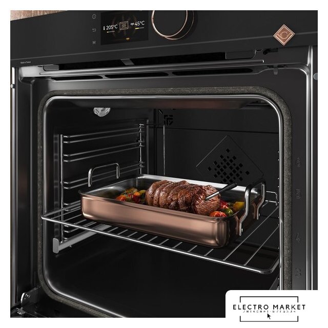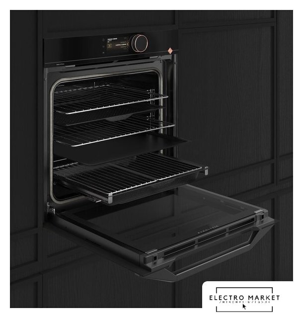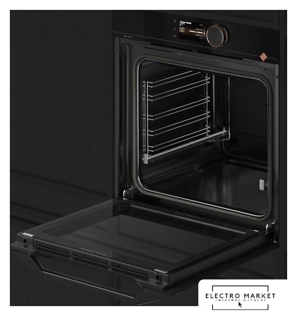 электрический с конвекцией, приготовление на пару, объем 71 л, 19 режимов, очистка пиролитическая + паровая, направляющие проволочные, термощуп