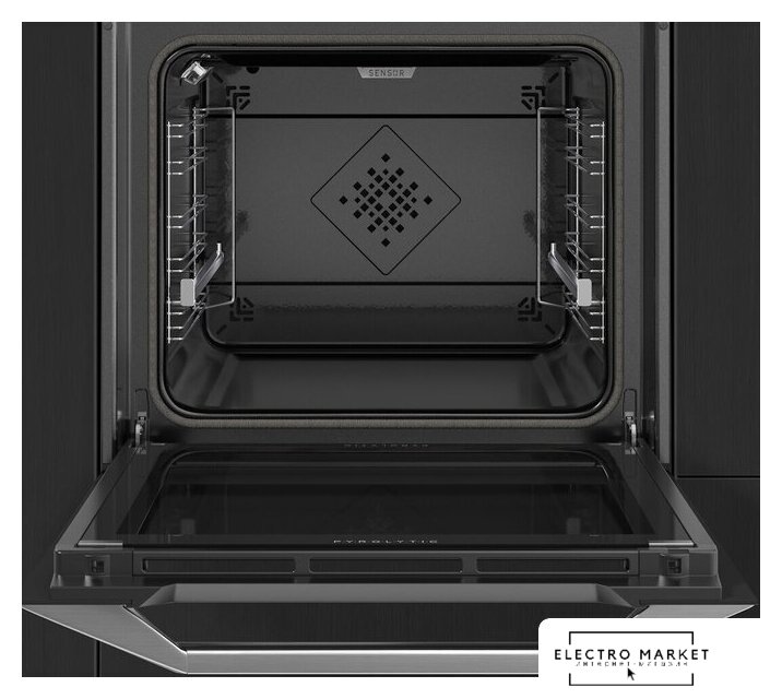 электрический с конвекцией, объем 73 л, 12 режимов, автопрограммы, очистка пиролитическая, 4 стекла в дверце, направляющие проволочные + телескопические