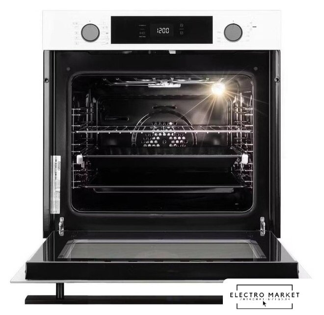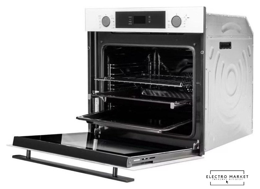 электрический с конвекцией, объем 69 л, 9 режимов, очистка паровая, 3 стекла в дверце, направляющие проволочные + телескопические (1 уровень), термощуп